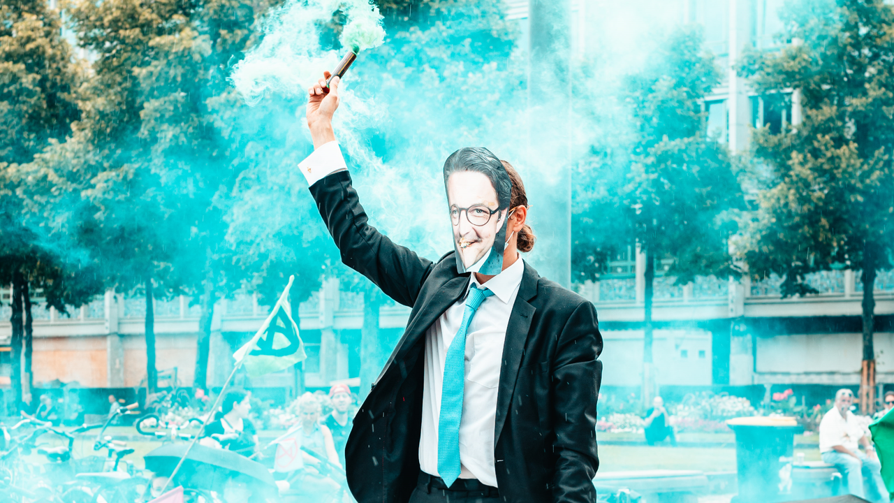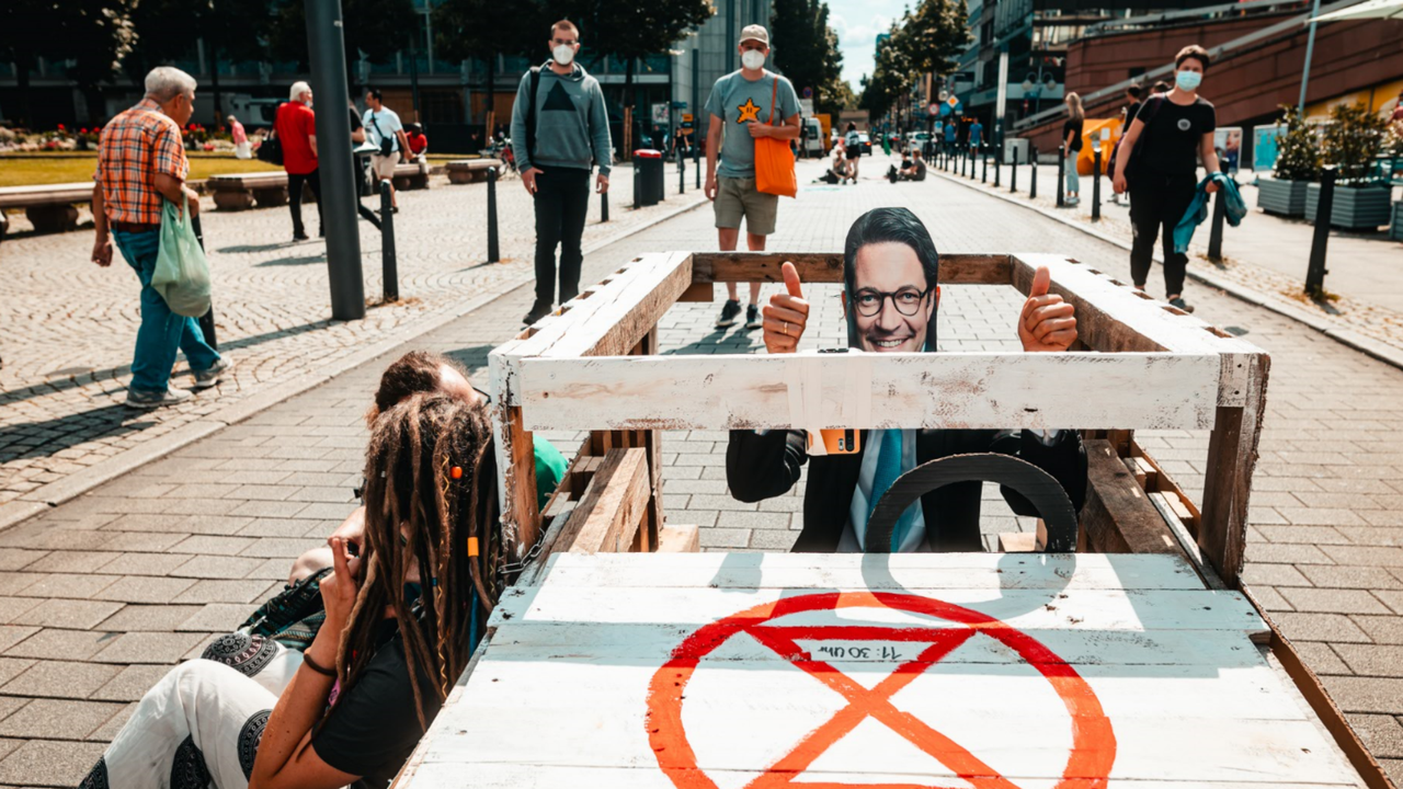 Mit dabei war dieses mal überraschend auch Bundesverkehrsminister Andi B. Scheuert. Mit seinem SUV ist er bis in die Blockade vorgefahren, um die Aktivisti zu unterstützen.