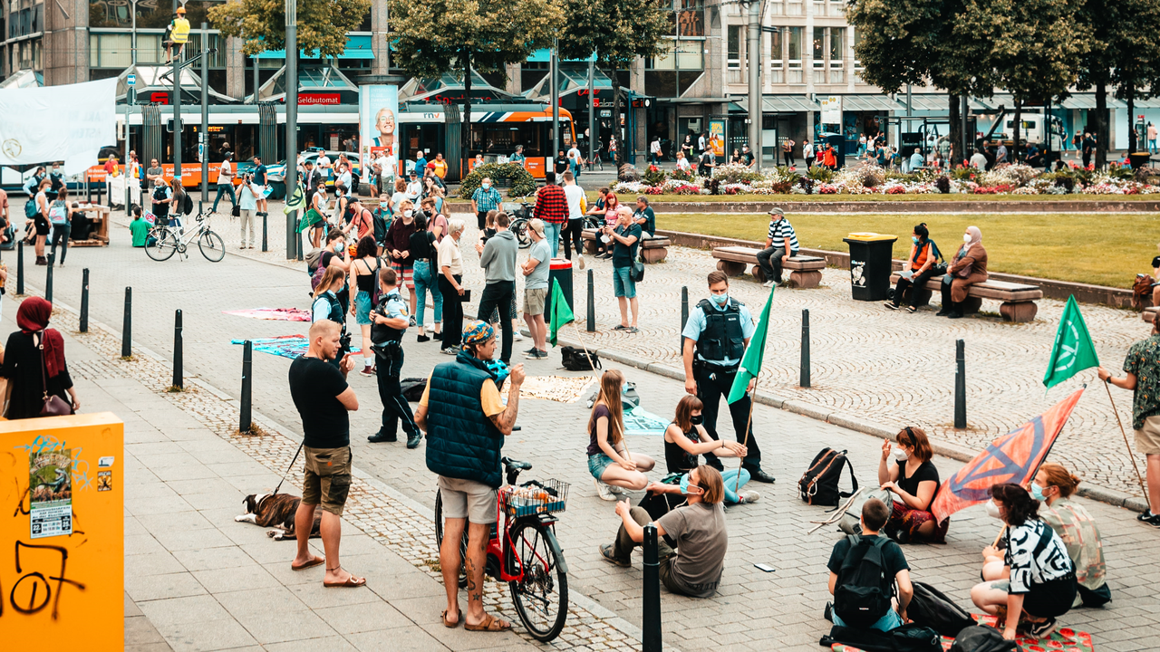 Zum zweiten Mal blockierten wir mitten in der Mannheimer Innenstadt. Denn wir fordern weiterhin: Es ist Zeit für ausgebauten & kostenlosen ÖPNV und autofreie Innenstädte!