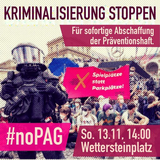Kommt am Sonntag, 13.11. um 14:00 zum Wettersteinplatz und zeigt, dass wir uns nicht unsere Freiheit nehmen lassen! In Solidarität mit den eingesperrten Klimaaktivist:innen! #noPAG