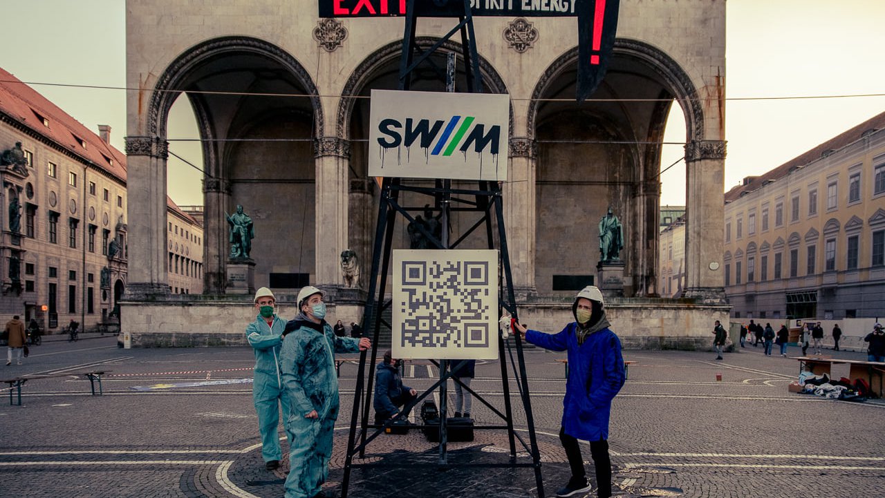 Finally, we dared to re-launch peaceful civil disobedience through sit-ins at a distance. We got used to firmer police repression. We would not mobilise but stay in small groups. We remained determined and became more creative. We let images speak instead of the masses, bringing material instead of people: A sick bed for our mother Earth, a big drilling rig to remind Stadtwerke München of their actions.