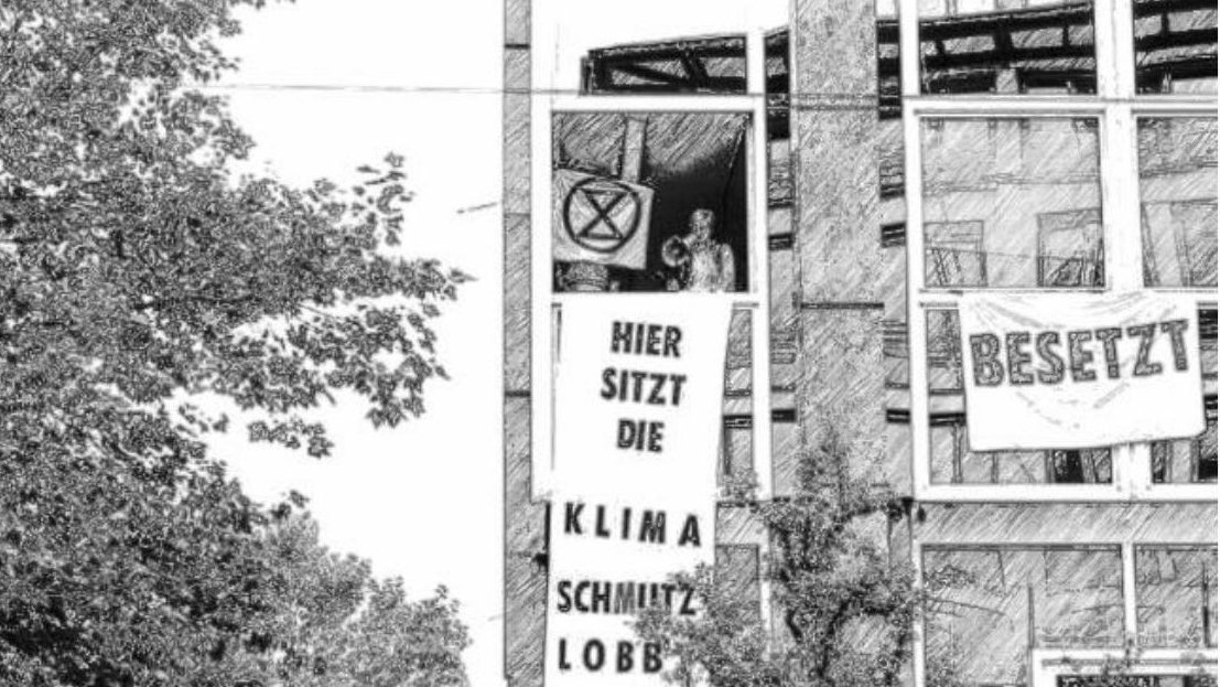 Mit der Aktion am 14.07.2021 wollten die Aktivist:innen die klimaschädliche Arbeit des CSU-nahen Lobbyvereins unterbrechen. Banner mit der Aufschrift "Hier sitzt die Klimaschmutzlobby", die sie aus dem Bürofenster hängten, sollten auf die wenig transparente Arbeit aufmerksam machen.