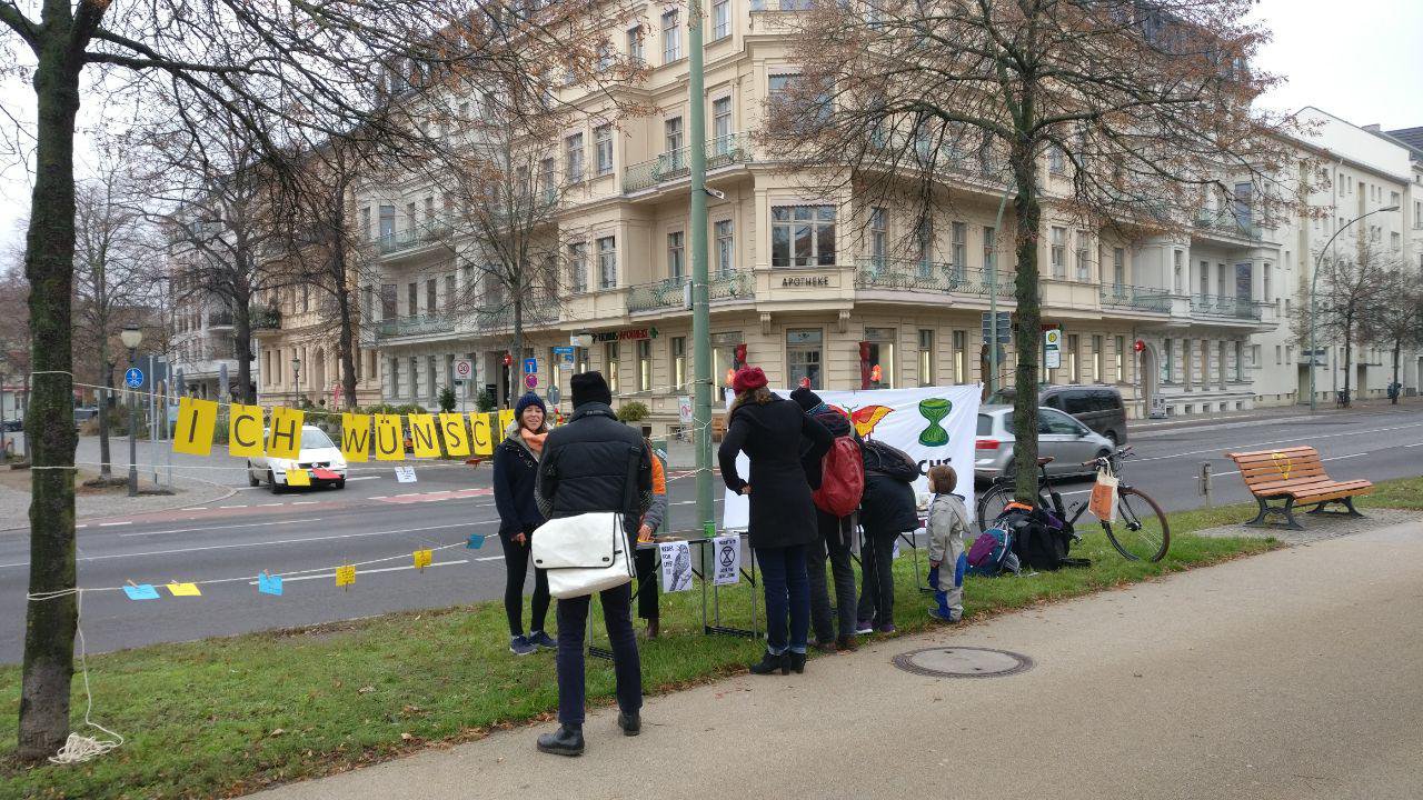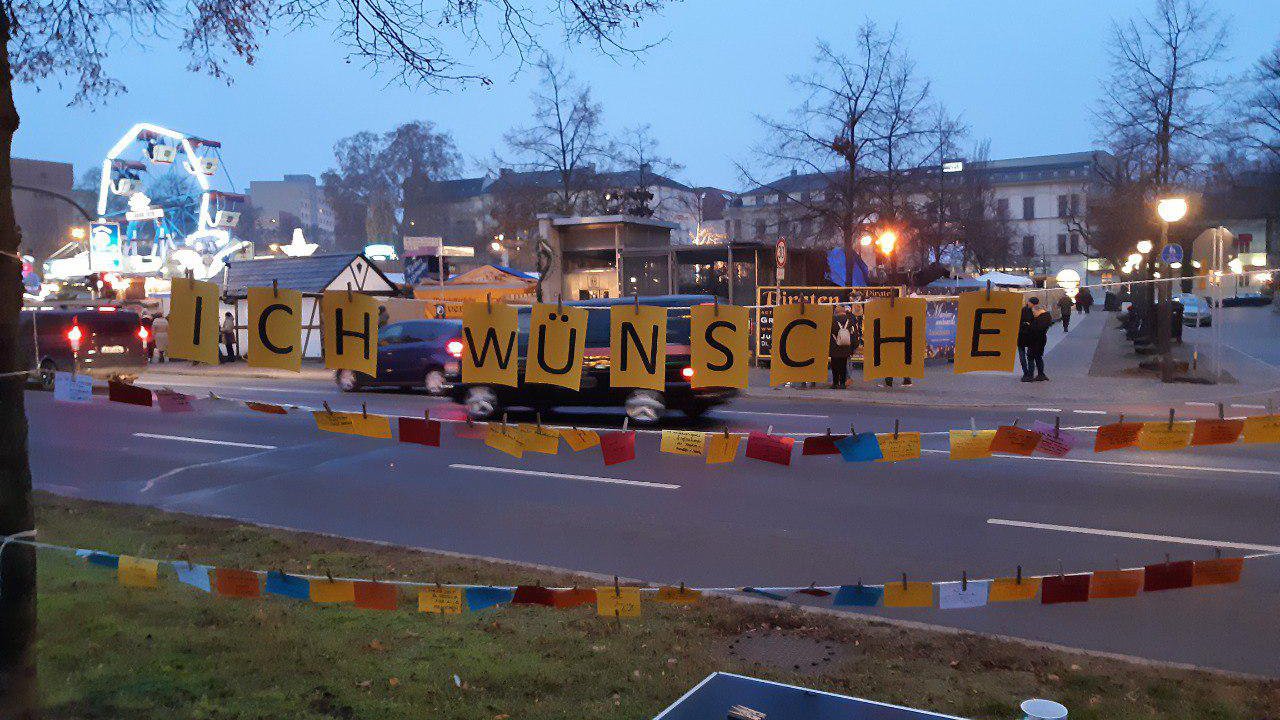 Zum 1. Advent am 1. Dezember veranstalteten wir eine Wunschzettel Aktion nahe dem Weihnachtsmarkt beim Brandenburger Tor in Potsdam. Dabei konnten Interessierte Postkarten ausfüllen, ganz nach dem Motto: "Für eine lebenswerte Zukunft wünsche ich mir..."