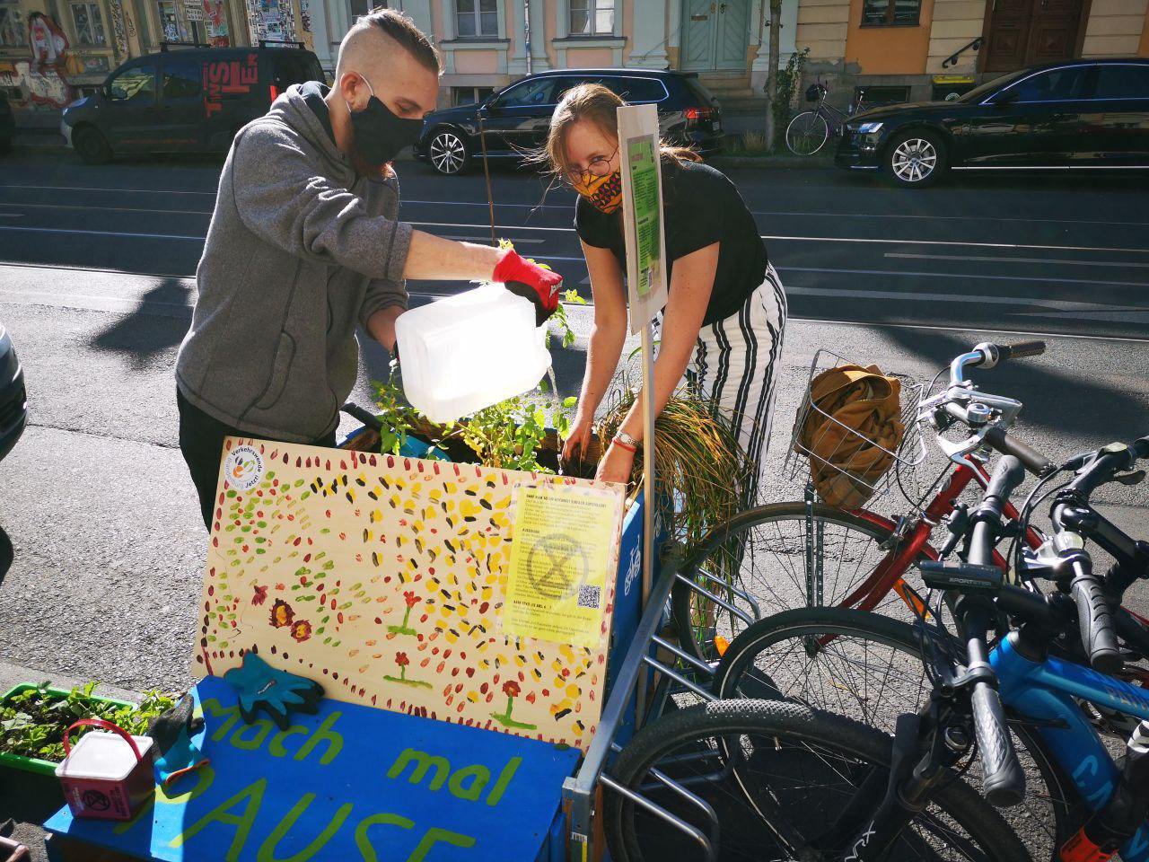 Alle sind eingeladen sich mit um die Pflanzen zu kümmern und bei den Platzparks mal eine Pause zu machen!