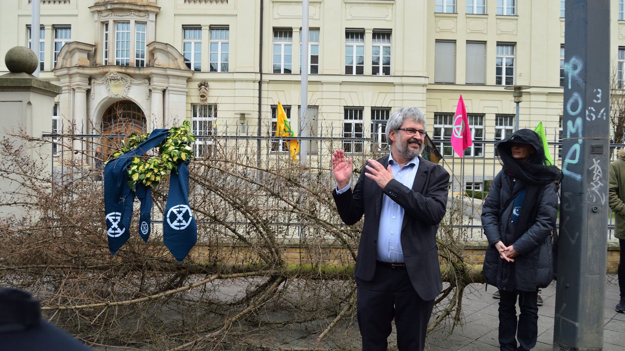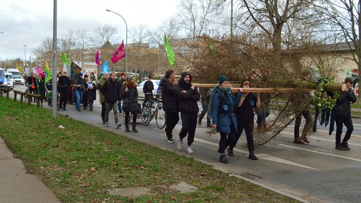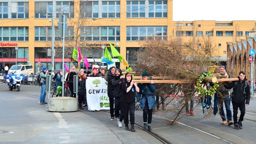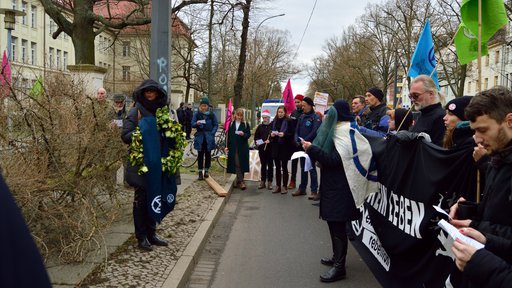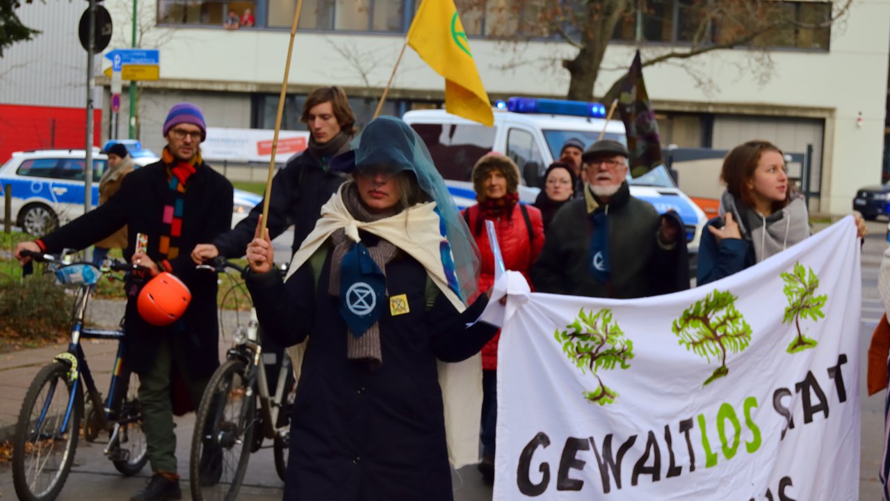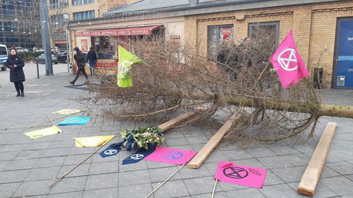 Gemeinsam mit XR Berlin veranstalteten wir einen Trauermarsch "Prozession der toten Bäume" ausgehend vom Potsdam Hauptbahnhof bis zur Staatskanzlei Brandenburg, wo am 18.12.2019 der Waldzustandsbericht während einer Pressekonferenz vorgestellt wurde.