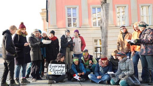 Auf dem Otto-Braun-Platz in Potsdam findet ein Dauerprotest Mo-Fr von 12 bis 14 Uhr unter dem Titel: "Everyday Climate Strike" statt. Thema ist: "Aufstehen gegen Rechtspopulismus und unsere humanitäre (Klima-)katastrophe"