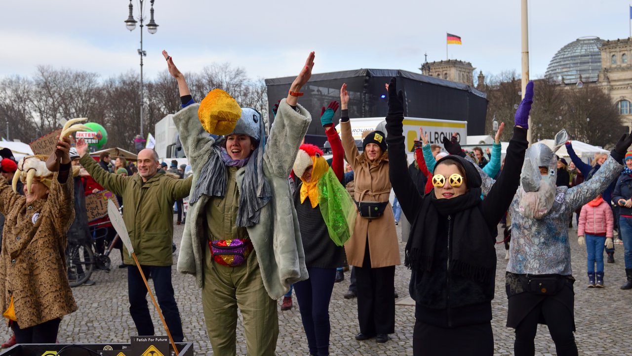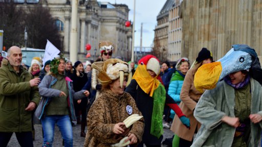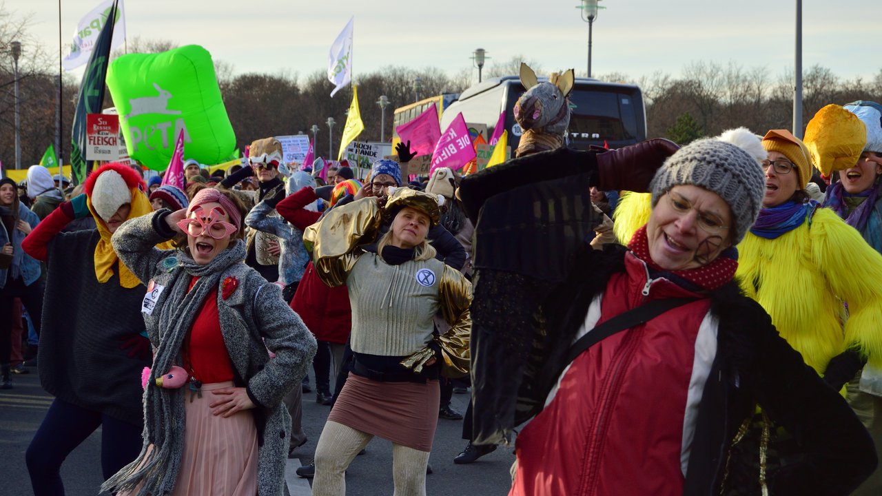 Wir waren gemeinsam mit XR Berlin und Animal Rebellion bei der "Wir haben es satt!"-Demonstration und unterstützten tatkräftig die DISCObedience Aktion im Animal Rebellion Demoblock.