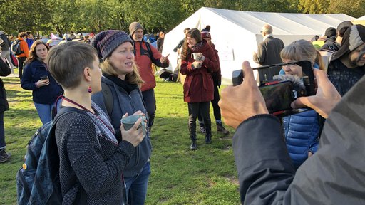 Gemeinsam mit RebellInnen aus dem Ruhrgebiet, Solingen, Düsseldorf, einem Kamera-Team von Euro-News und dem Medienprojekt Wuppertal sind wir mit dem Zug angereist, um bei der Rebellion Wave eine Woche lang dabei zu sein. Wir haben gemeinsam am Stern (Siegessäule) auf der Straße übernachtet, als diese zweieinhalb Tage lang von XR besetzt wurde. Die restliche Zeit haben wir aber im Camp oder in anderen Unterkünften Unterschlupf gefunden. Es war eine wunderbare Zeit, in der wir alle die friedliche und achtsame Gemeinschaft von XR genießen durften.
