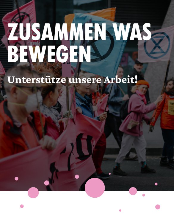 Öffentlichkeitsarbeit, Kommunikations- und technische Infrastruktur ausbauen und stärken, Klimacamps und Mahnwachen organisieren, Bereitstellung von Trainings und Ressourcen für die Gruppen, Rechtskosten finanzieren, die aus unserem zivilen Ungehorsam entstehen.