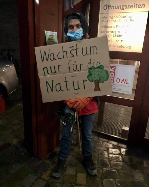 Wir wollen es nicht länger zulassen, dass für unsere auf Wachstum ausgelegte Wirtschaftsweise immer mehr Lebensraum zerstört wird. Deshalb veranstalten wir anlässlich der Sitzung des Naturschutzbeirates am 19.01. ab 16:45 Uhr eine Mahnwache vor der Ravensberger Spinnerei.